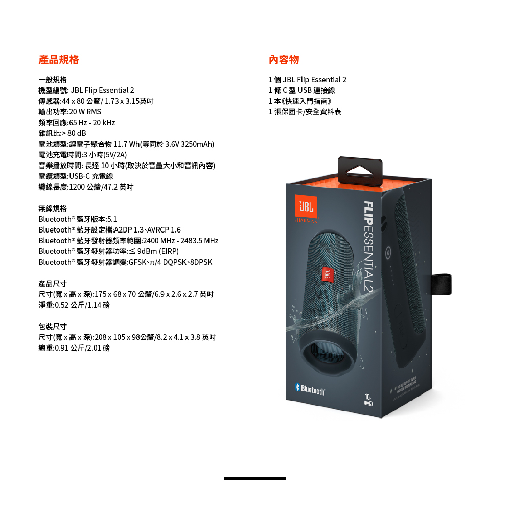 JBL Flip Essential 2 可攜式防水藍牙喇叭