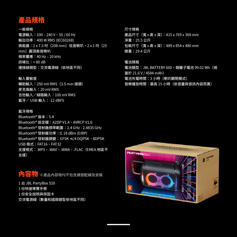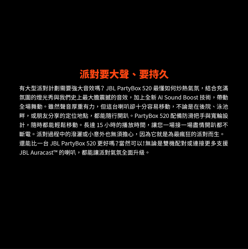 JBL PARTYBOX 520 便攜式派對燈光藍牙喇叭