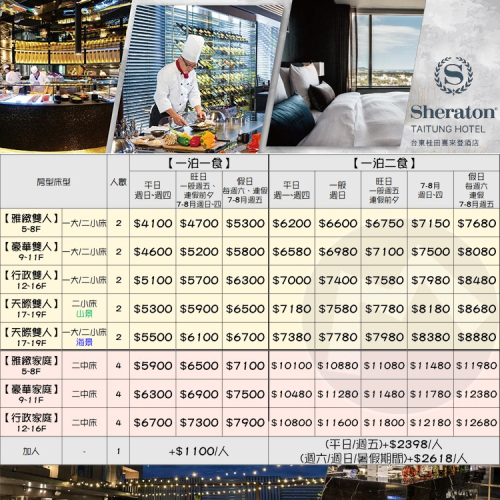 (瑪利歐旅遊網)台東五星桂田喜來登酒店『豪華/行政雙人房+2客早餐+泳池+設施』