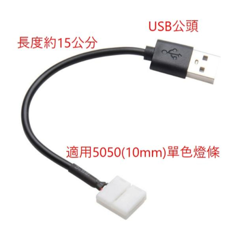 ►572◄10mm 2P免焊卡扣轉USB連接線 LED燈條免焊連接器 燈帶電源連接 適用5050 LED燈條