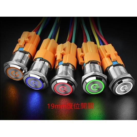 ►2215-2219◄19mm金屬按鈕開關 復位 無段開關 環形光圈符號 天使眼 防水IP67 帶燈 送線組