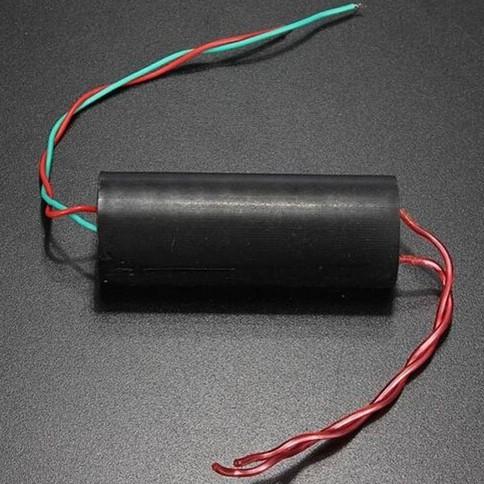 輸出間距1.5CM內 正常使用輸出不短路不超出最大拉弧即可, 非正常使用是極易損壞的 先固定好輸出間距再通電 本高壓模組使用特斯拉線圈原理製作而成,輸出高壓脈衝高壓電流,體積小,效率高,週邊電路簡單(只需接上開關,電池即可)放電強度猛烈。 輸入電壓:DC 3V-7.2V 輸入電流:2A-5A 高壓型式:脈衝電流型 輸出電壓:20萬伏左右(使用時請注意安全) 高壓兩極放電距離:10mm-20mm 輸出高壓線長度:約100mm 輸入電源線長:約100mm(紅線為正極) 外形尺寸:Φ24*64mm 關於電源:可使用單節3.7V鋰電池或兩節串聯,如18650電池,閒置的手機電池(要去掉保護板,建議容量在2000mAh以上)或鎳鎘/鎳氫電池組、4V或6V鉛酸蓄電池等。 此模組為科學小製作用高壓逆變器變壓器/升壓器的成品模組,輸入端輸入DC3V-7.2V電壓後可在輸出端得到20萬伏左右的直流高壓(約1-2釐米的電弧),注意沒有點火點煙功能 接線:紅線為電源正極。輸出為2根耐高溫高壓的矽膠線