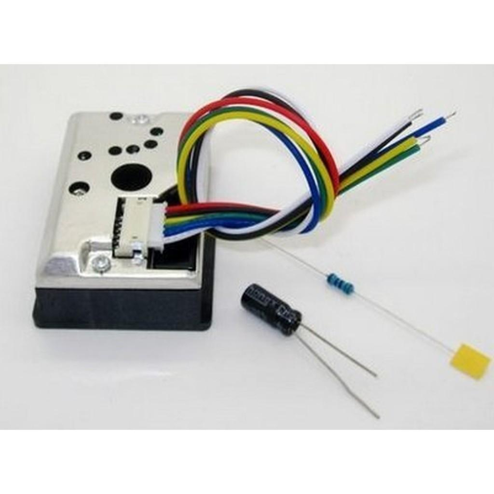 檢測原理 其原理如下圖,感測器中心有個洞可以讓空氣自由流過,定向發射LED光,通過檢測經過空氣中灰塵折射過後的光線來判斷灰塵的含量。 使用測試代碼: int dustPin=0; float dustVal=0; int ledPower=2; int delayTime=280; int delayTime2=40; float offTime=9680; void setup(){ Serial.begin(9600); pinMode(ledPower,OUTPUT); pinMode(dustPin, INPUT); } void loop(){ // ledPower is any digital pin on the arduino connected to Pin 3 on the sensor digitalWrite(ledPower,LOW); delayMicroseconds(delayTime); dustVal=analogRead(dustPin); delayMicroseconds(delayTime2); digitalWrite(ledPower,HIGH); delayMicroseconds(offTime); delay(1000); if (dustVal>36.455) Serial.println((float(dustVal/1024)-0.0356)*120000*0.035); } 測試得到的資料和空氣品質對照: 3000 + = 很差 1050-3000 = 差 300-1050 = 一般 150-300 = 好 75-150 = 很好 0-75 = 非常好 靈敏度電流 - DC 正向 (If)電壓 - 輸出電壓 - 電源安裝類型工作溫度 0.5V/(0.1mg/m3) 10mA 3.4V 4.5 V ~ 5.5 V 底座安裝 -10°C ~ 65°C 該傳感器具有非常低的電流消耗(最大20mA,11毫安培典型值),最高7VDC供電。 感測器的輸出是一個類比電壓成正比的測量粉塵密度,具有0.5V/0.1mg/m3的靈敏度。 Sensor Pin Arduino Pin 1 Vled –> 5V(150歐電阻) 2 LED-GND –> GND 3 LED –> Digital pin 2 4 S-GND –> GND 5 Vo –> Analog pin 0 6 Vcc –> 5V The LED pin has to be modulated with a cycle of 1ms as discussed in the datasheet. The LED seems to use a PNP transistor so to power on, the LED pin must actually recieve a lower voltage. Arduino 原始程式碼 int dustPin=0; int dustVal=0; int ledPower=2; int delayTime=280; int delayTime2=40; float offTime=9680; void setup(){ Serial.begin(9600); pinMode(ledPower,OUTPUT); pinMode(4, OUTPUT); } void loop(){ // ledPower is any digital pin on the arduino connected to Pin 3 on the sensor digitalWrite(ledPower,LOW); // power on the LED delayMicroseconds(delayTime); dustVal=analogRead(dustPin); // read the dust value via pin 5 on the sensor delayMicroseconds(delayTime2); digitalWrite(ledPower,HIGH); // turn the LED off delayMicroseconds(offTime); delay(3000); Serial.println(dustVal); }