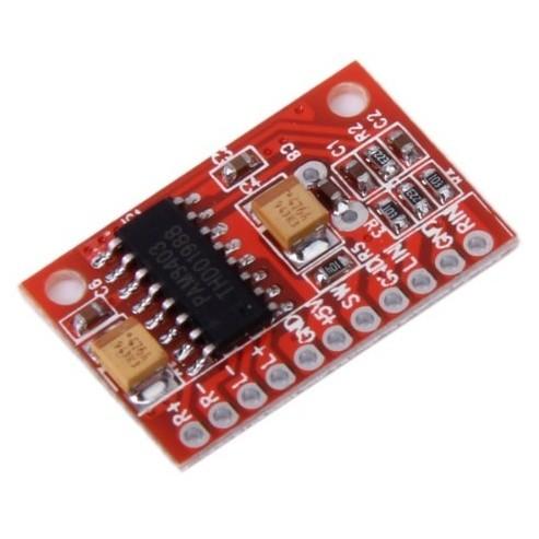 超迷你數字功放板,10年新型高效數字功放,輸入5V時獲得[3 x 2]6W的功率,超薄型板子,可非常方便放入小塑膠盒或其它設備的縫隙裡,如打造MP3/4或筆記本外置小音箱等,任你想像,電源建議取USB的5V或用單節鋰電供電。 《優點》:10年新出高效數位功放晶片,內部特殊輸出處理電路,取消了傳統的LC網路,比用LC的更低的EMI值!在較低電壓下獲得最大功率輸出,超級省 電,內置待機電子開關,內置高增益緩衝放大器,內置短路保護。《電源》:3.6至5.5V,單節鋰電或USB供電適宜,也可用四節1.2V電池供電,用變 壓器供電一定要加5V穩壓電路,超過5.5V晶片將燒壞。 《參數》: 電源:直流(DC):3.6v-5.5V 輸出功率:3W+3W(4歐) 信噪比:90dB 效率:>90% 尺寸:24*15.5*mm 定位孔尺寸:間距20mm 孔徑:2mm 《注意事項》: 1:電源正負極不能接反,電源電壓不能超過5.5V,這兩條違規會致使IC損壞。 2:片內有高增益緩衝器,不能改動板上任何元件參數,不符合的參數將導致IC損壞。 3:輸入線請儘量用帶遮罩的線,可以起到抗干擾作用,消除雜波電流聲。 4:輸出為cmos管BTL驅動方式,左右喇叭的負極不能夠接在一起,即接喇叭的4條線是完全獨立的,不允許共接!