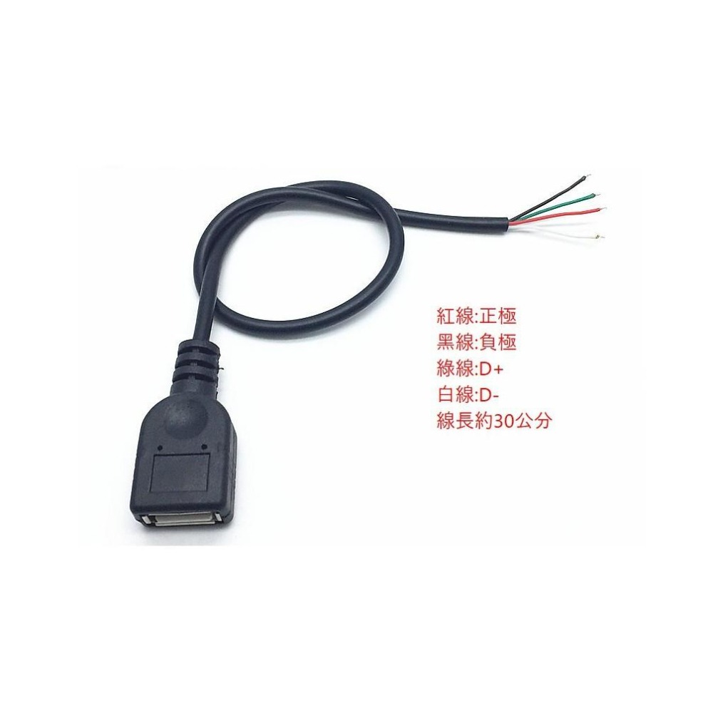 ►998◄USB單母頭線 USB母包頭 單頭充電2.0數據線 四芯尾部剝皮上錫 30CM