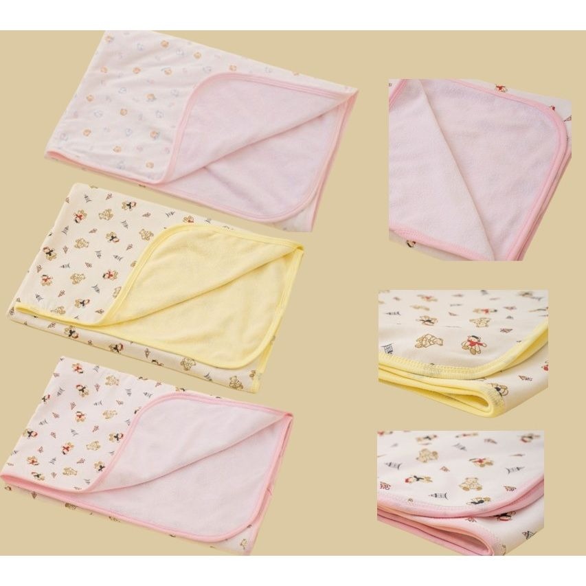 雙面不同材質,一面毛巾布,一面棉布,可做嬰兒包巾、寶寶蓋毯或浴巾
