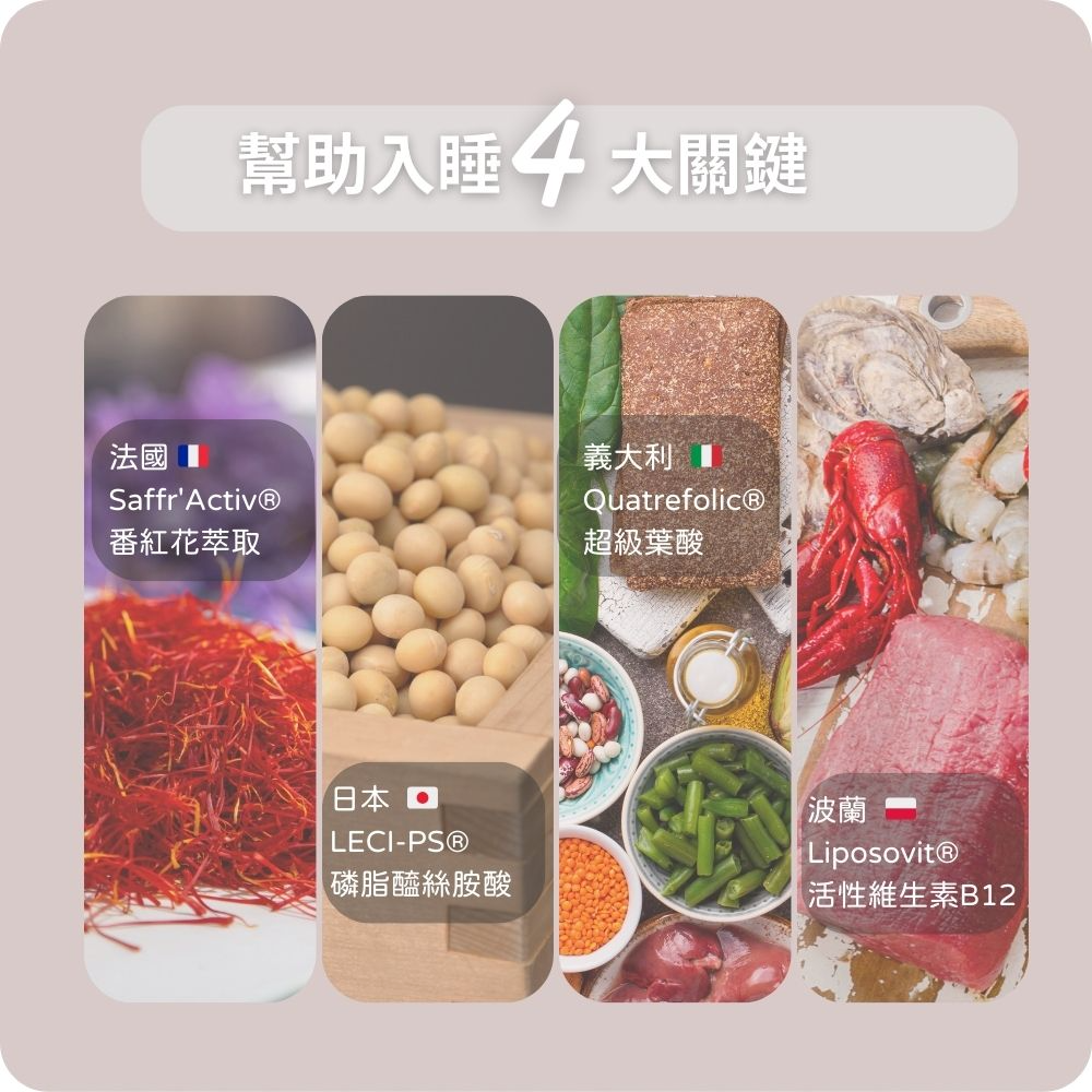 入睡|睡前營養補充,幫助入睡:番紅花 × B6B12 × 磷脂醯絲胺酸