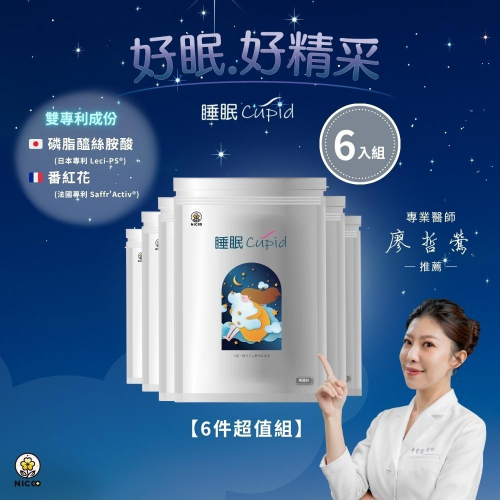 【日珂】睡眠Cupid‧幫助睡眠‧6入組|藏紅花 (番紅花) ‧磷脂醯絲胺酸‧色胺酸‧日本專利‧機能保健食品