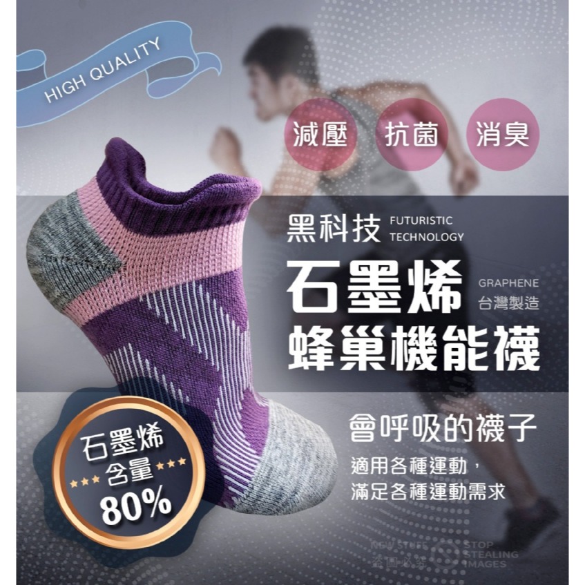 台灣製 80%石墨烯有氧3D蜂巢機能襪/足弓襪/消臭襪
