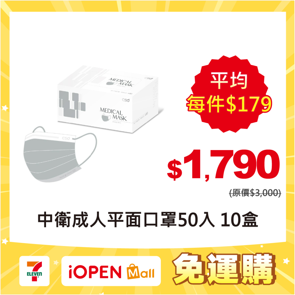 【7-ELEVEN 門市團購】CSD中衛醫療口罩-成人平面口罩(50片/盒)