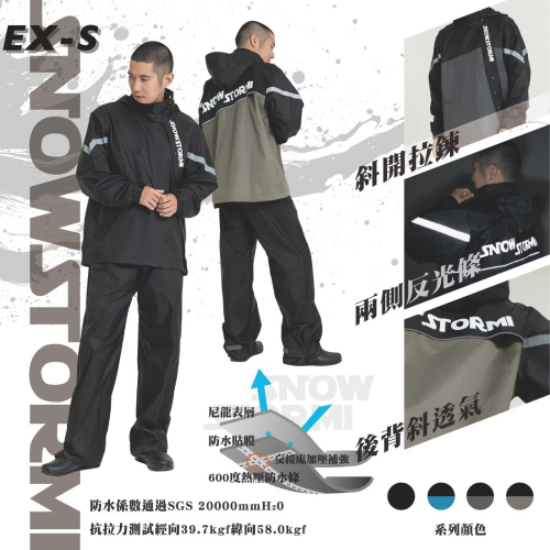 《一戴安全帽》SNOWSTORMI/EX-S #鈦灰/黑 #草綠/黑 #黑/黑 斜開兩件式機能雨衣