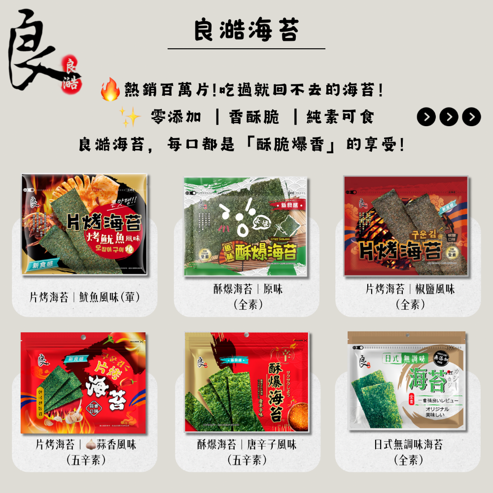 • 良澔 片烤海苔|大蒜味 36g 良澔 片烤海苔|大蒜味 36g