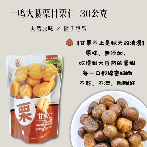 來自大綦的即食甘栗仁,無糖無鹽無添加,原味就是最好吃的味道。