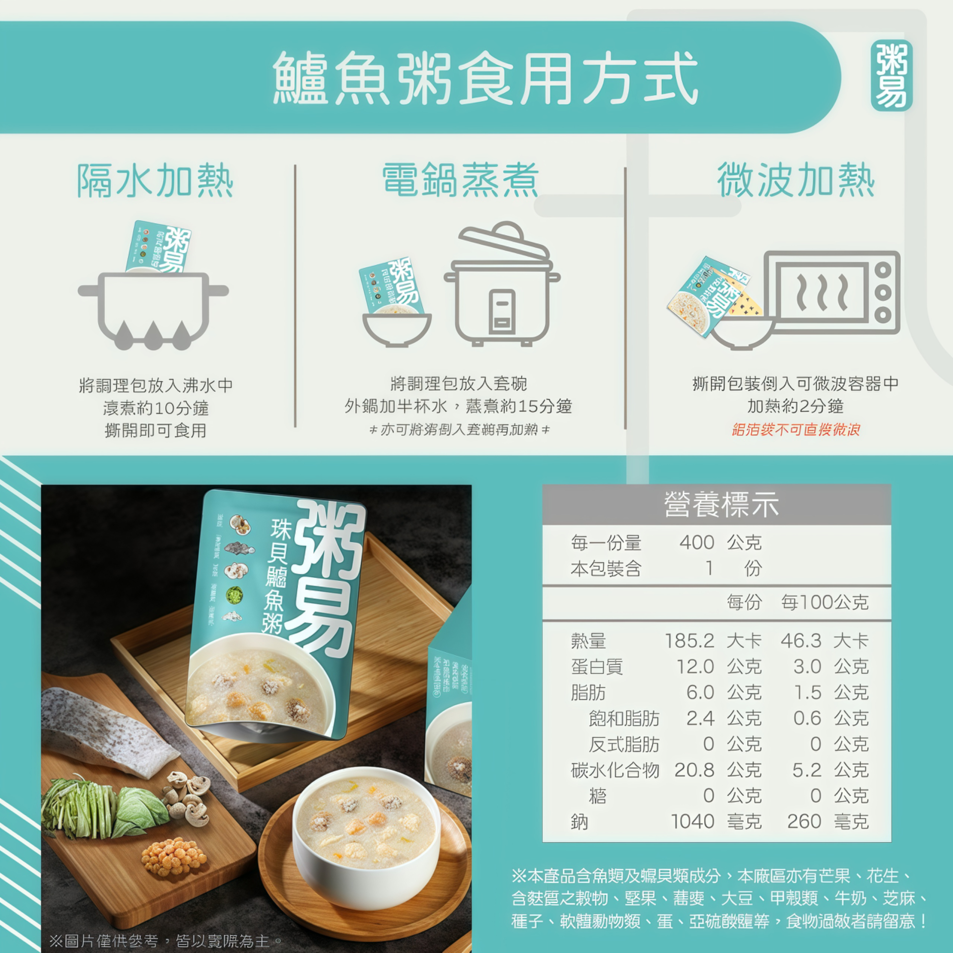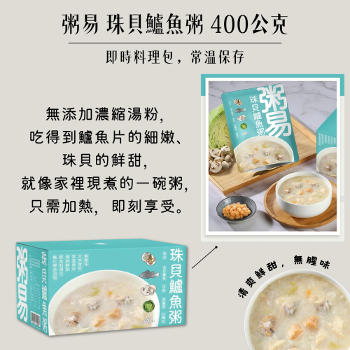 【粥易 珠貝鱸魚粥】400g 常溫即食粥