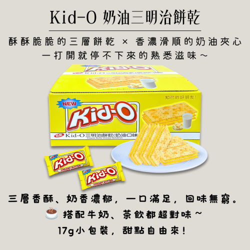 Kid-O 奶油三明治餅乾,用三層餅皮 × 厚實奶油餡,給你嘴巴飽滿的幸福感。