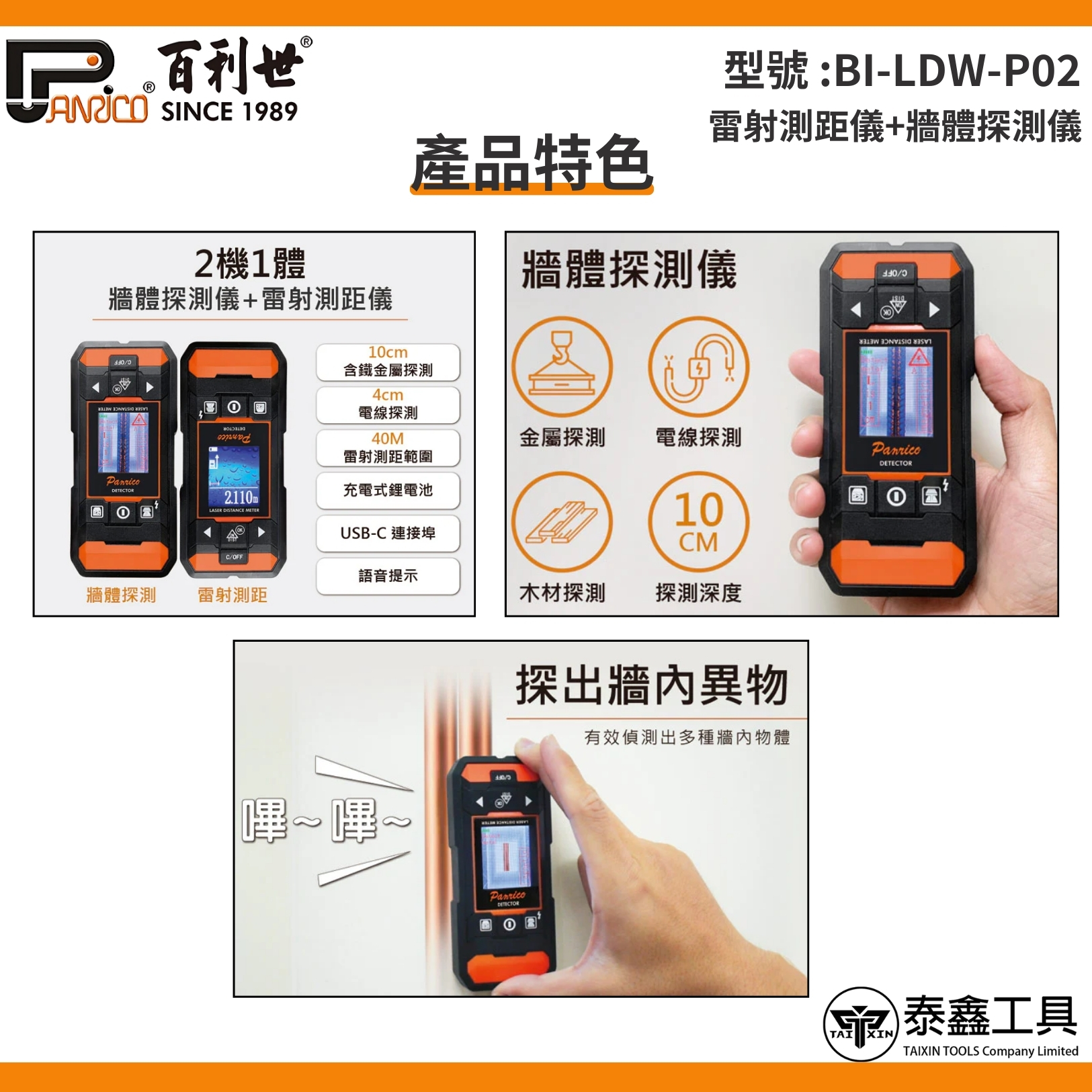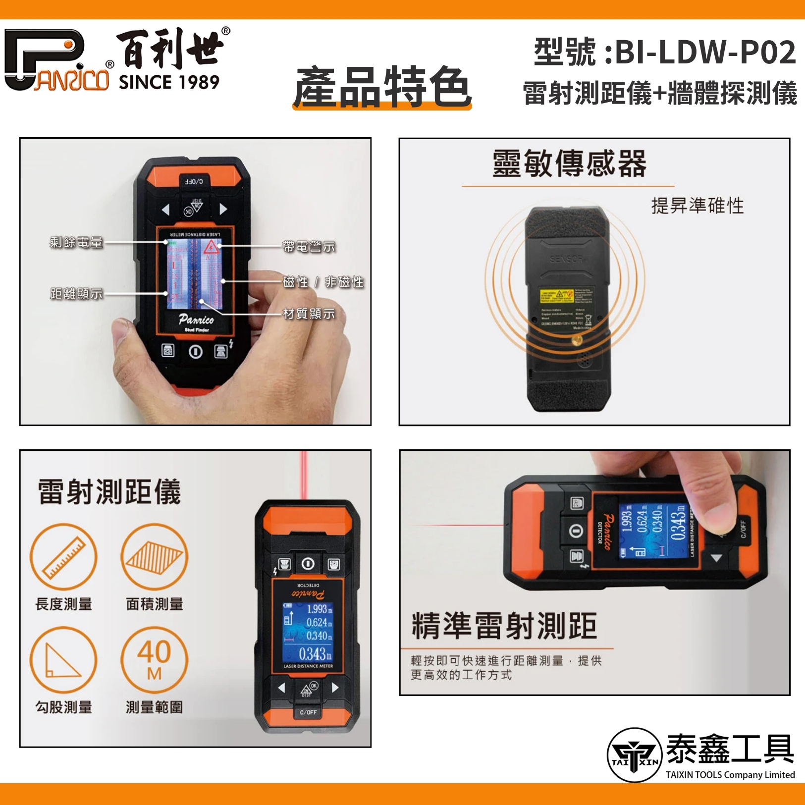 雷射測距儀+牆體探測儀 2機1體 鐳射測距儀 紅外線測距儀 雷射電子尺測量儀 (BI-LDW-P02)