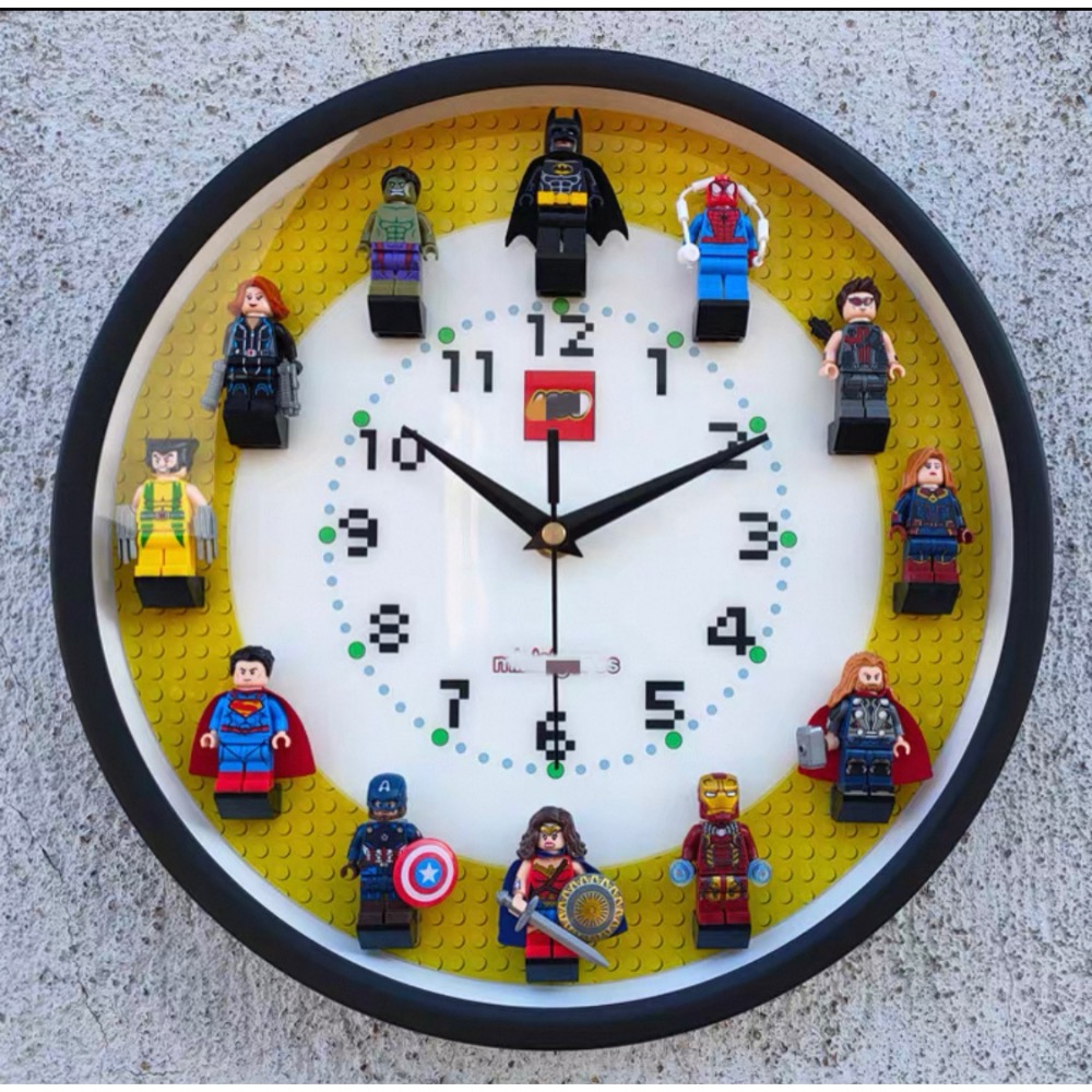原創樂高積木 12吋圓形立體人仔積木掛鐘房間牆面裝飾掛錶靜音時鐘