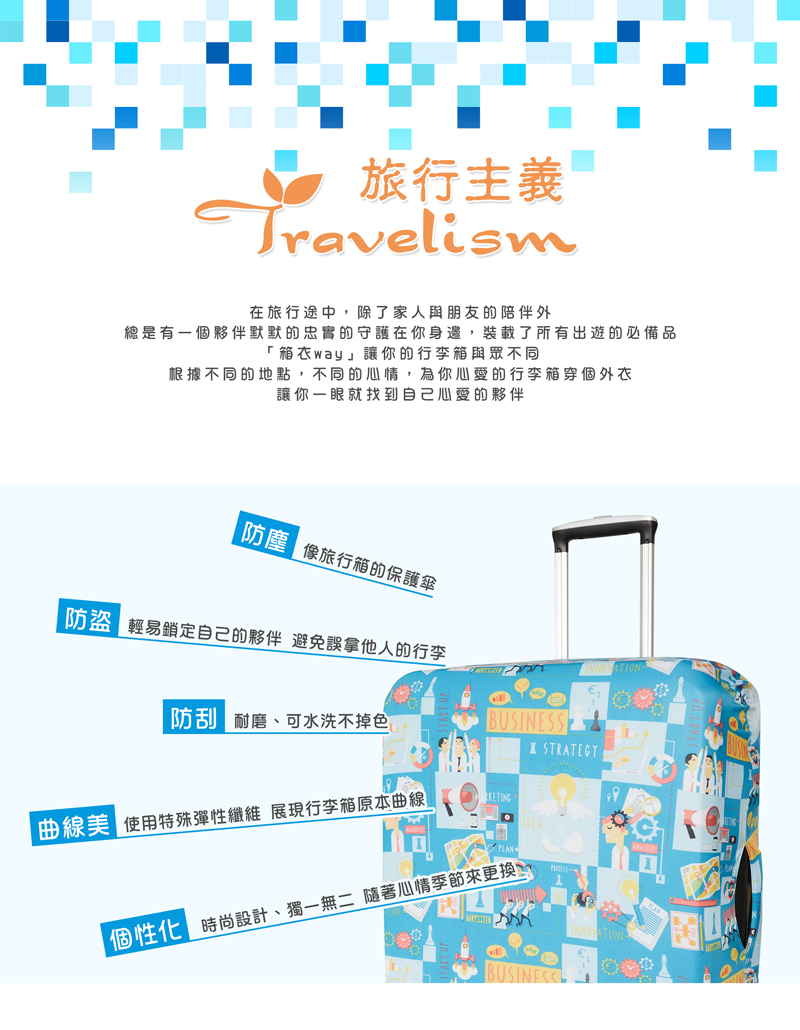 【箱衣WAY-免運】[Travelism-潮流系列] 成功人士 行李箱套旅行箱登機箱防塵套創意箱套