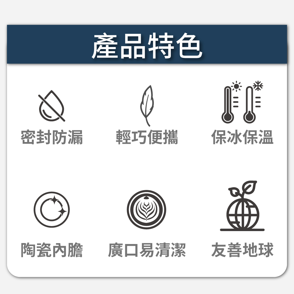 材質:304不銹鋼 / 食品級矽膠圈 / 食品級PS杯蓋
