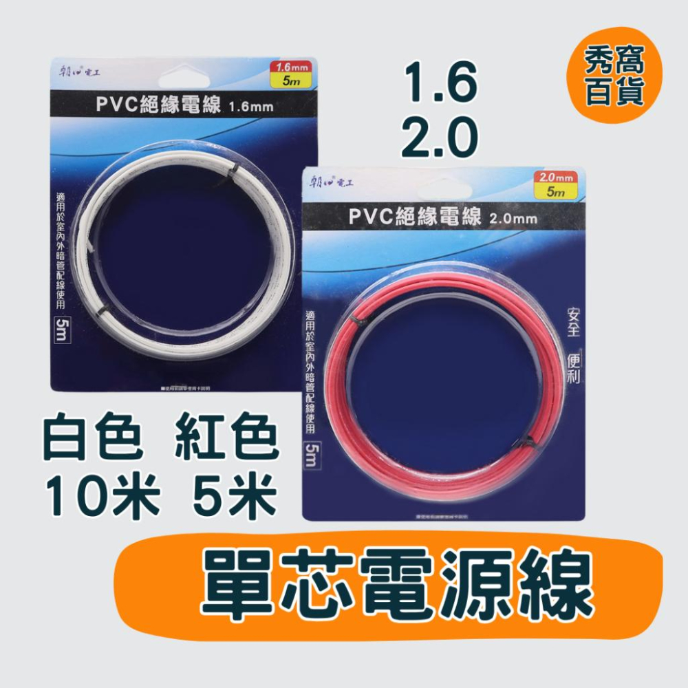雙日 絕緣電線 單芯線 1.6mm 2.0mm 10米 5米 紅色 白色