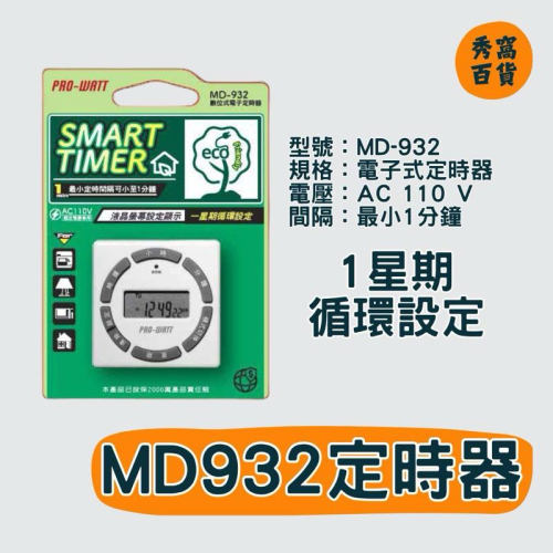 MD-932 數位定時器 電子式定時器 110V 1星期循環設定 最小1分鐘設定 液晶螢幕設定 限室內使用