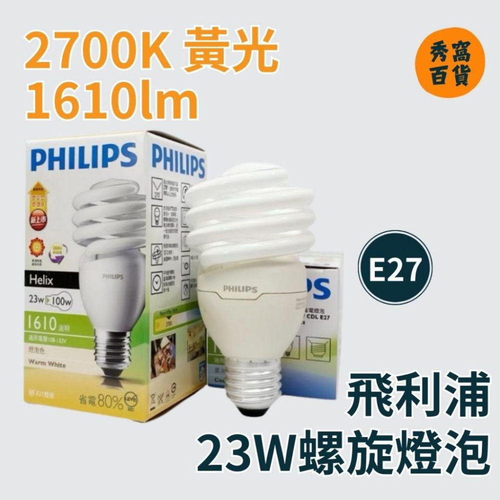 【飛利浦】 ❗️2入組 ❗️黃光 23W 螺旋燈泡 2700K 1610lm 120V E27燈頭