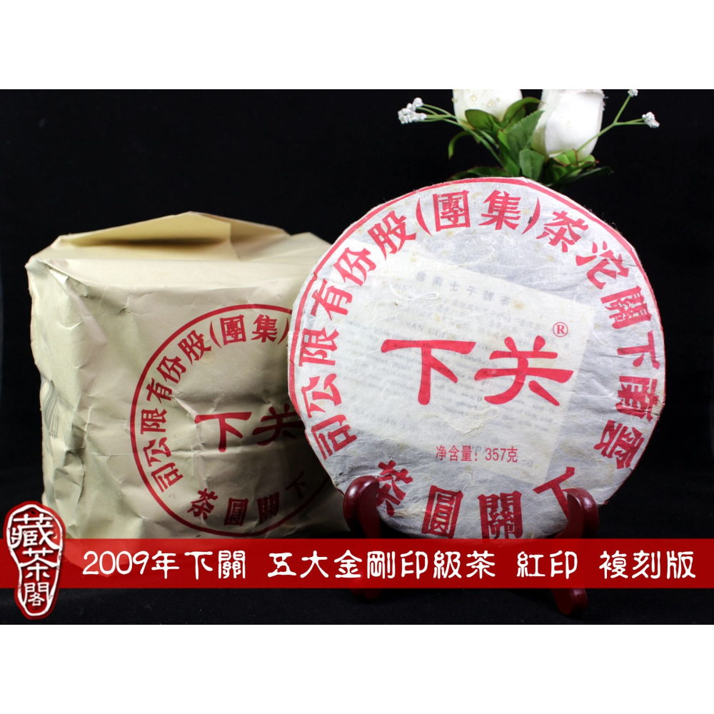 【藏茶閣】2009年雲南下關普洱茶 紅印 複刻版 無煙燻味 七子餅 生茶