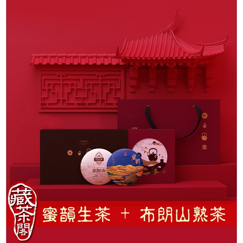 蜜韵採勐海古樹春料製成,布朗山熟茶選料自大益布朗山基地,此為生熟各一餅的蜜韻寶盒賣場