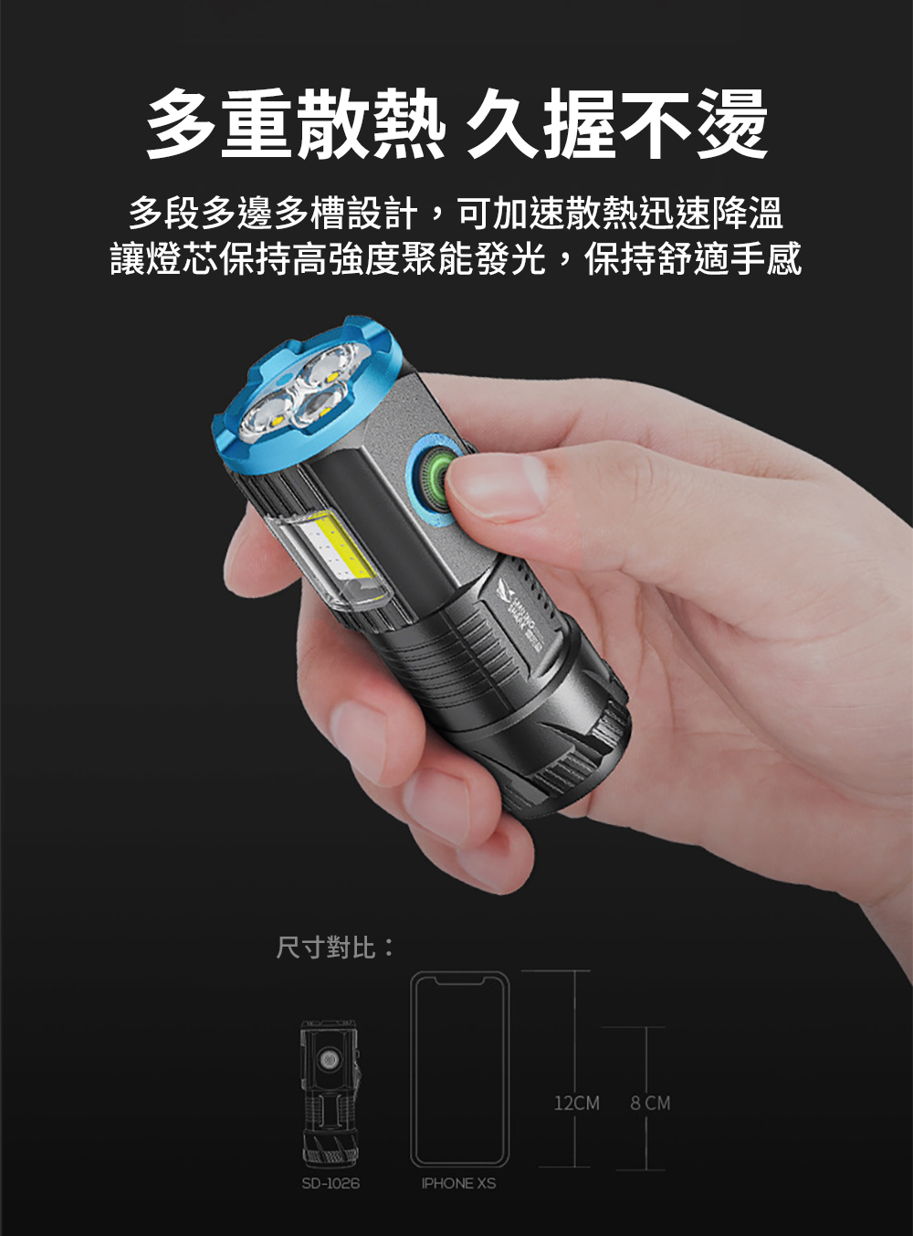 微笑鯊【SD1026迷你強光多功能手電筒】防水 充電手電筒 磁吸手電筒 露營 登山 釣魚 戶外照明 多功能照明