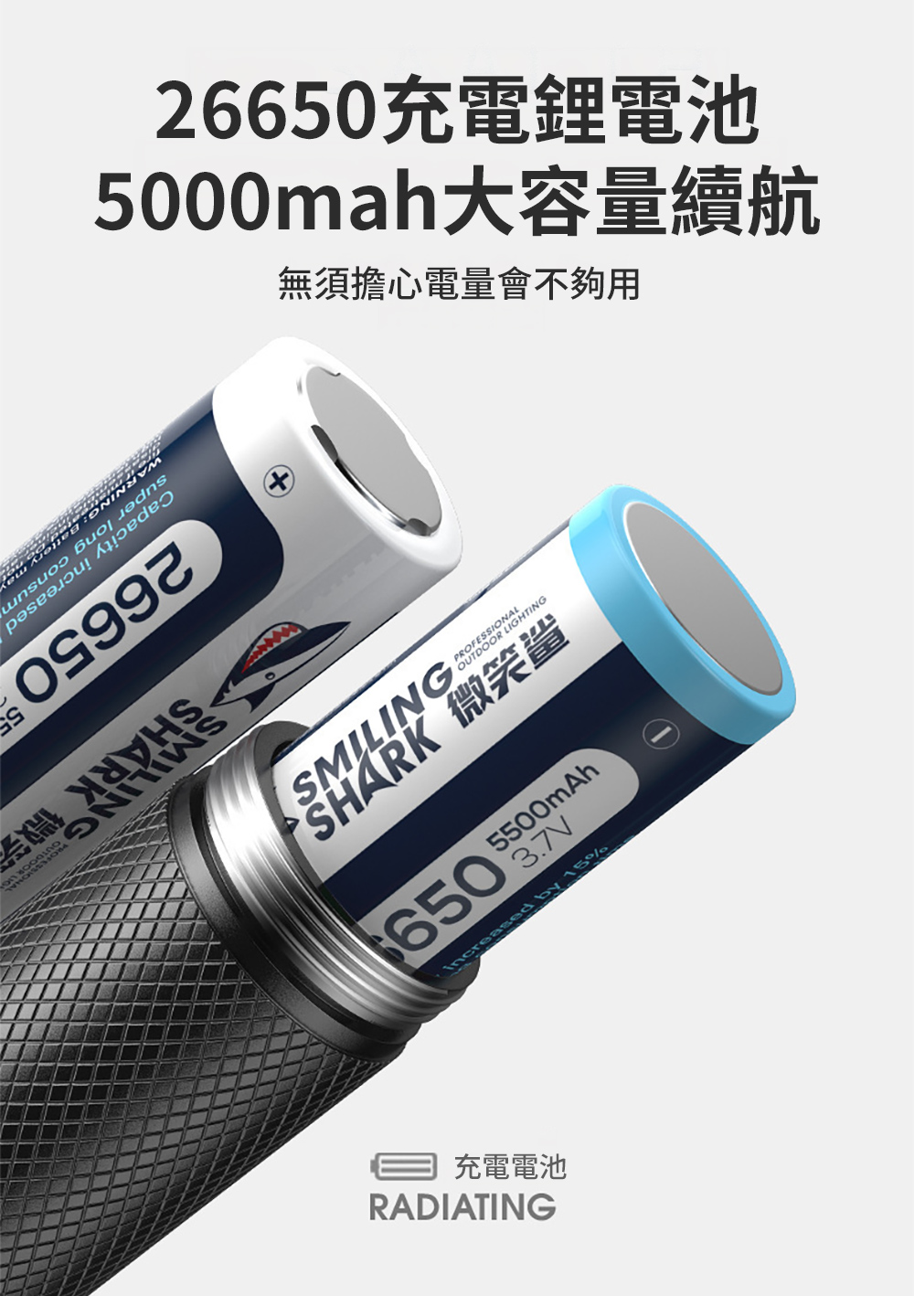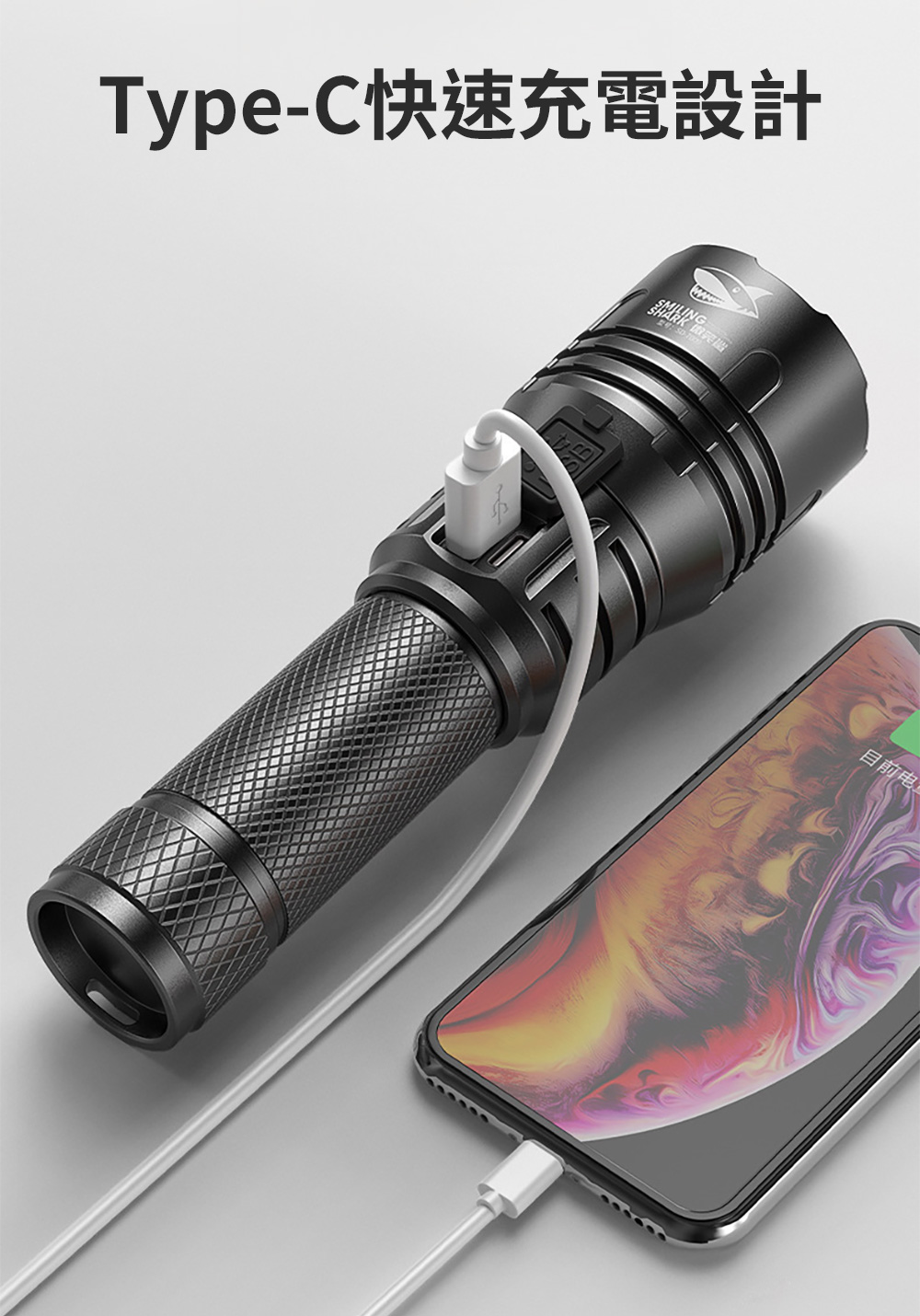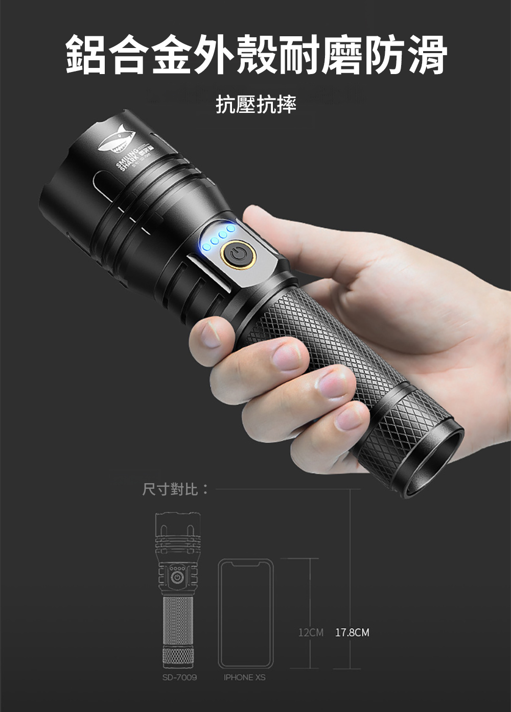 微笑鯊【SD7009 變焦白激光手電筒】防水 強光手電筒 充電手電筒 伸縮手電筒 露營 登山 釣魚 戶外照明 長續航