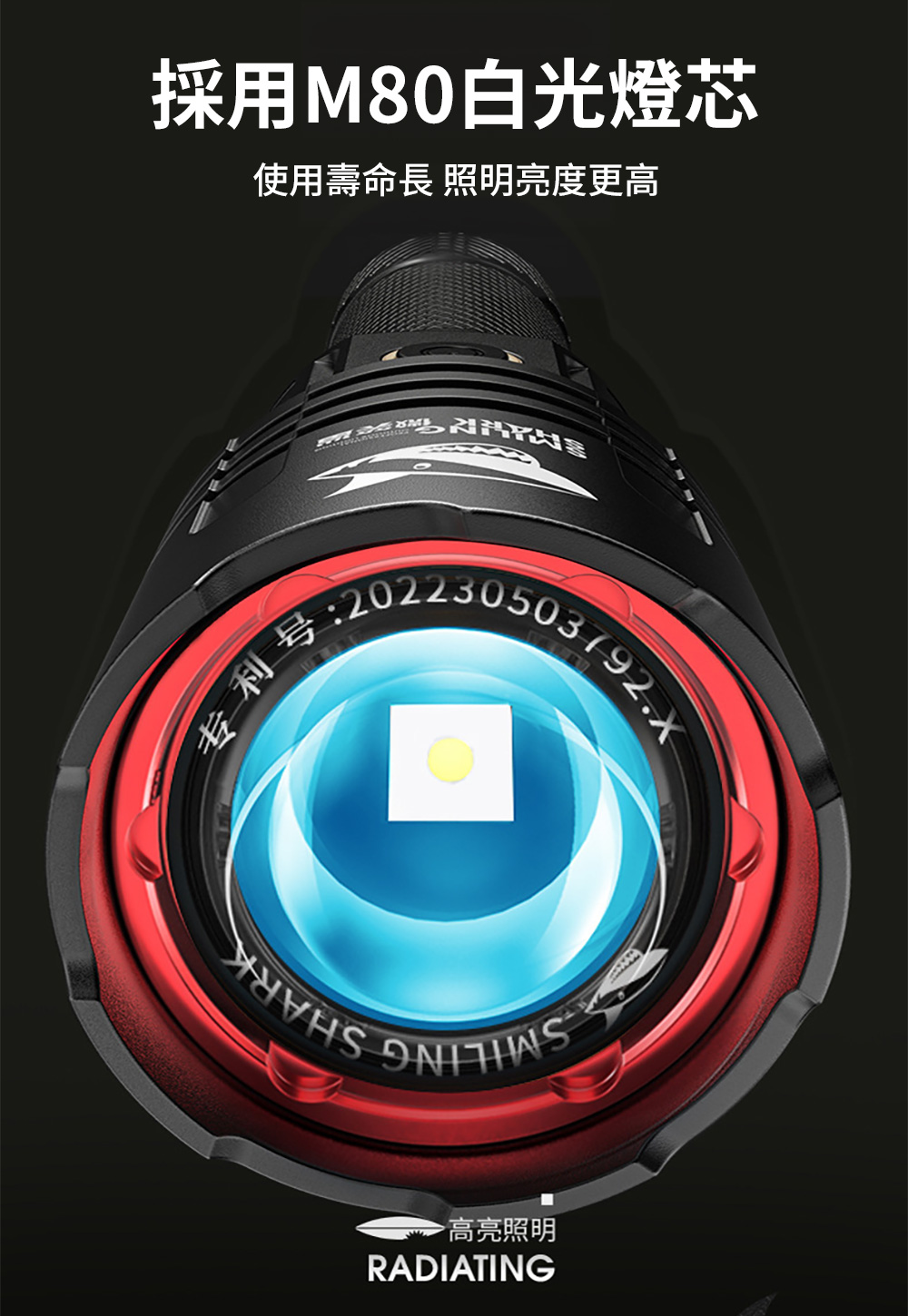 採用M80白光燈芯,使用壽命長,照明亮度高