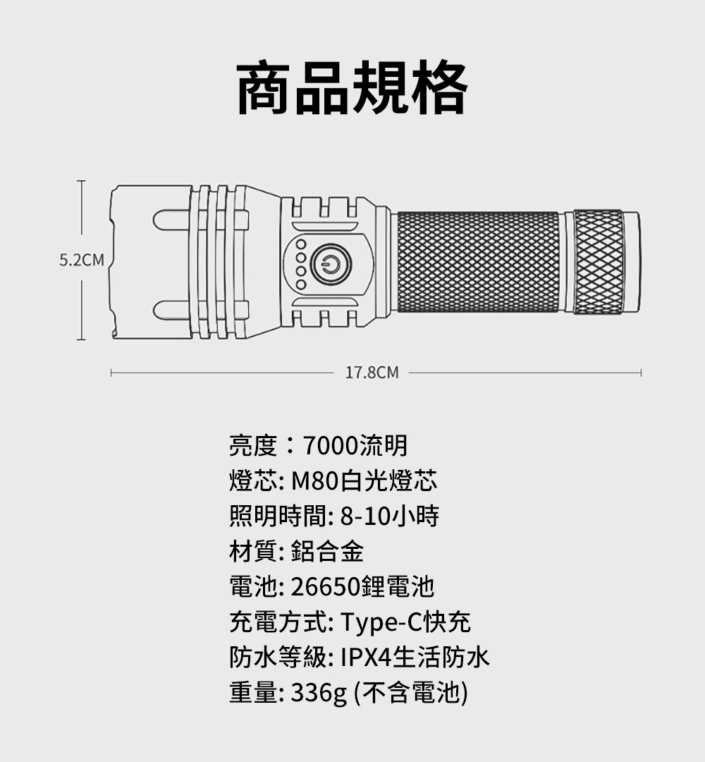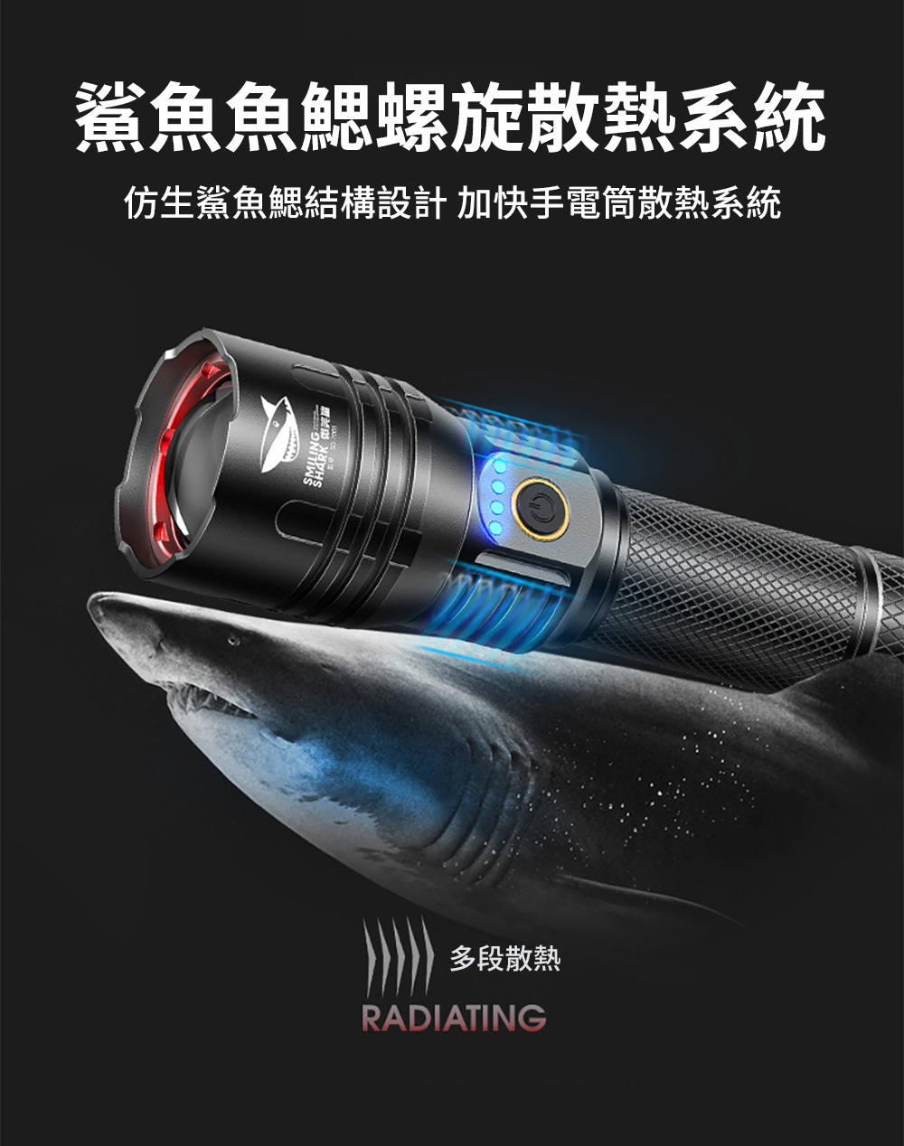 鯊魚鰓螺旋散熱系統,加快手電筒散熱