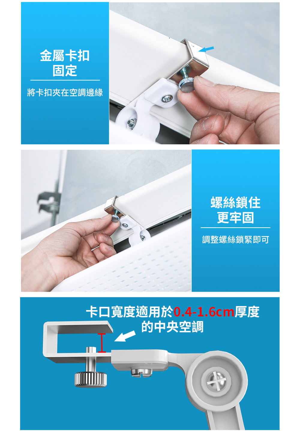 -使用金屬卡扣固定,輕鬆安裝、緊密牢固