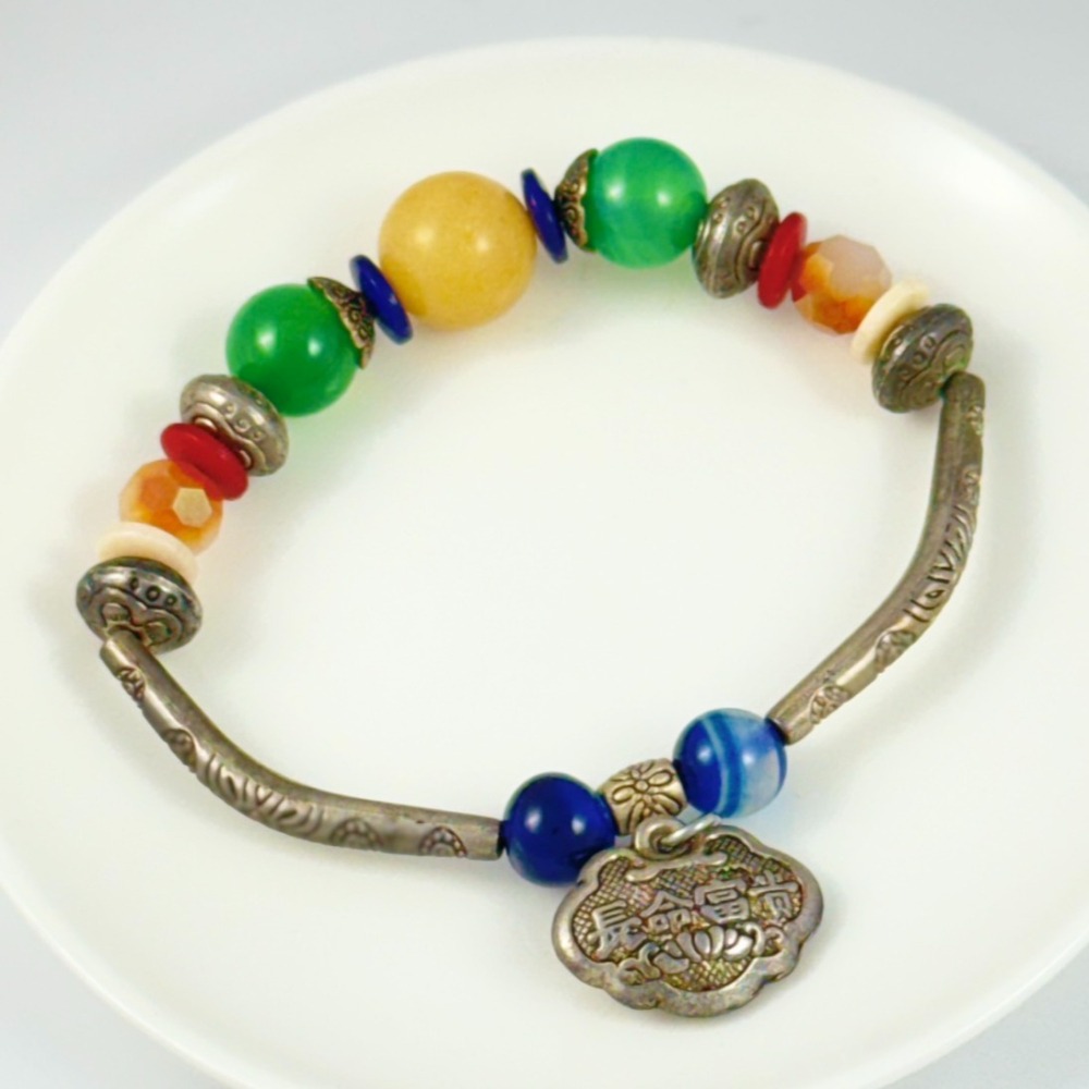 是一款結合祈福能量與時尚設計的水晶手鍊,象徵健康長壽、財富圓滿與平安順遂。