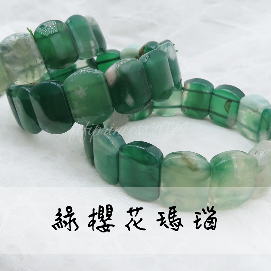 • 綠櫻花瑪瑙手排17mm+-17cm-不挑 綠櫻花瑪瑙手排17mm+-17cm-不挑