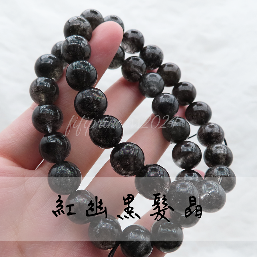 • 紅幽黑髮晶三圈-6mm+-15cm-不挑 紅幽黑髮晶三圈-6mm+-15cm-不挑