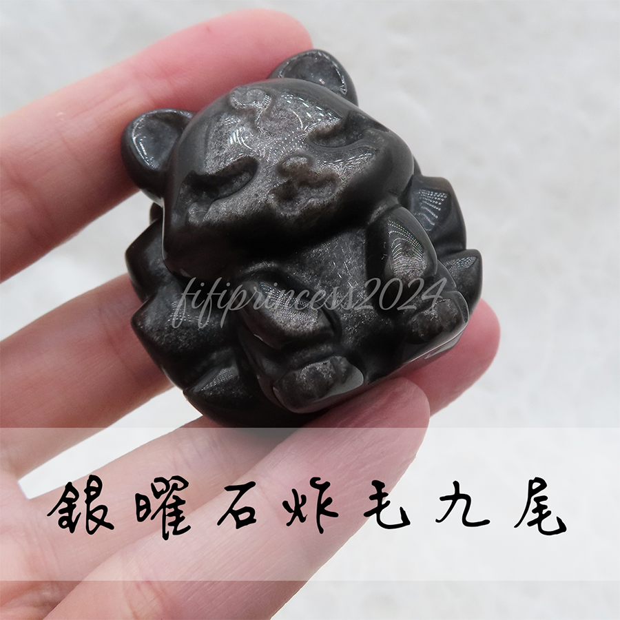 肥肥公主水晶小舖*1205*銀曜石炸毛九尾*雕刻件*