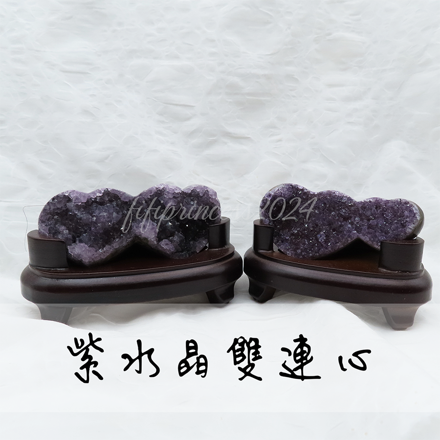 肥肥公主水晶小舖*1220*紫水晶雙連心晶鎮*原礦擺件*
