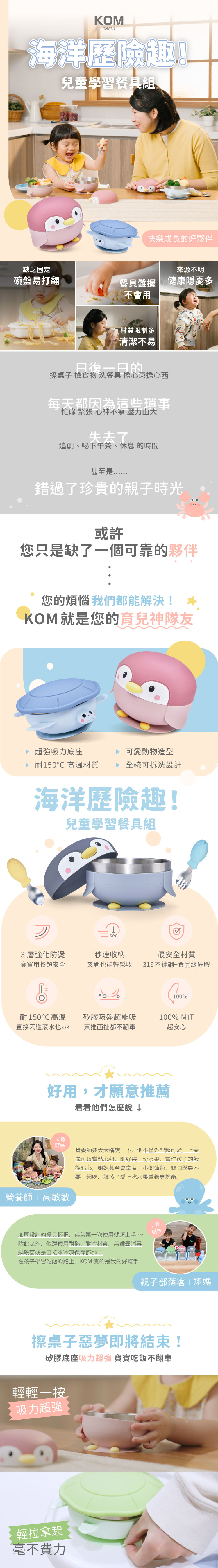 【7-ELEVEN門市團購】【KOM】海洋歷險趣-不鏽鋼兒童矽膠學習餐具-海龜/企鵝 (含學習兒童餐具湯/叉)