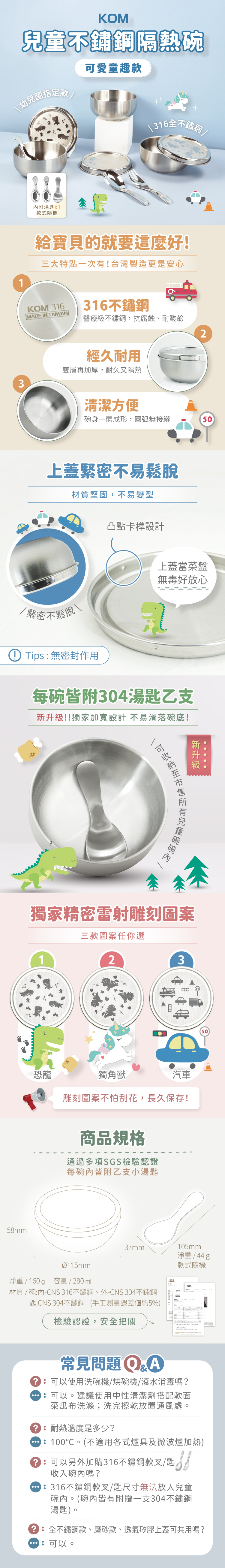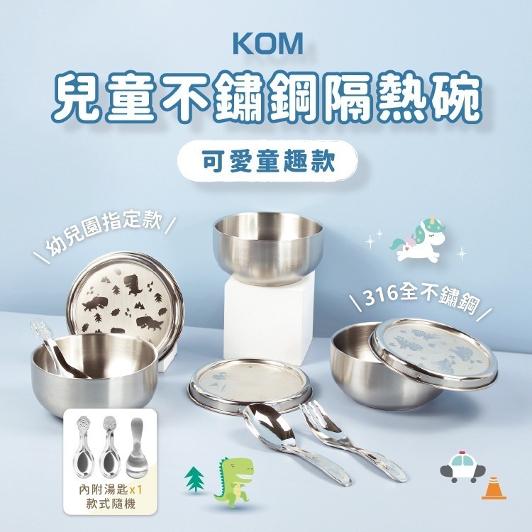 【KOM】316不鏽鋼兒童隔熱碗-(獨角獸/恐龍/汽車)
