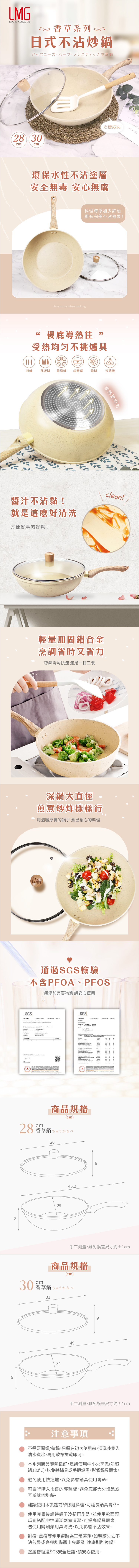 LMG 香草系列日式不沾炒鍋(含玻璃鍋蓋)-28CM/30CM