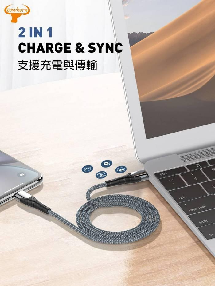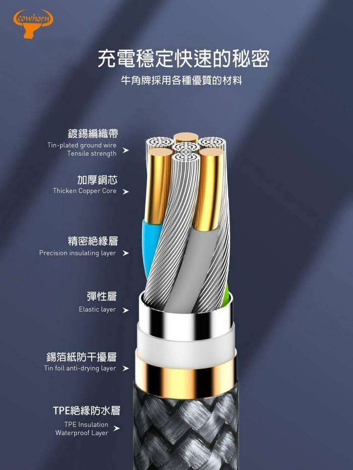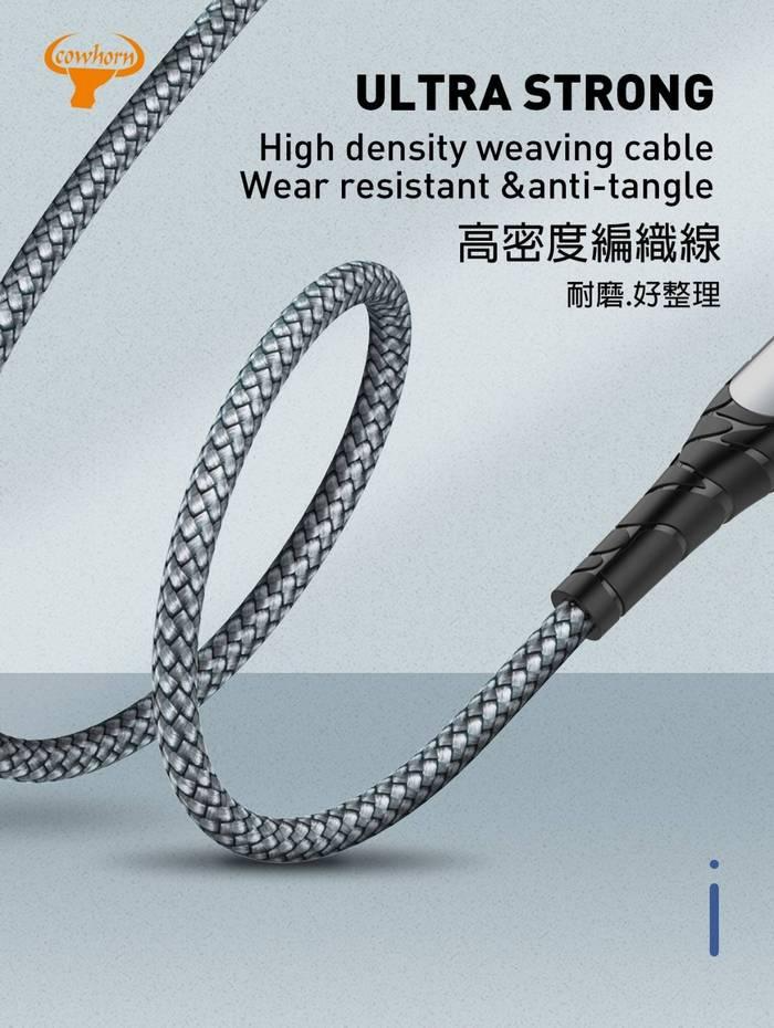 cowhorn 牛角 1米~2米 編織快充線(灰色)