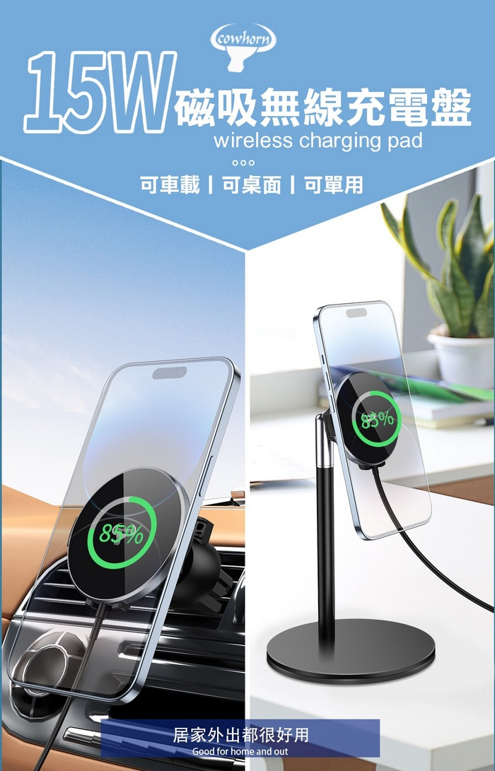 Cowhorn 牛角 磁吸雙用充電器(立架款) S12贈出風口車架