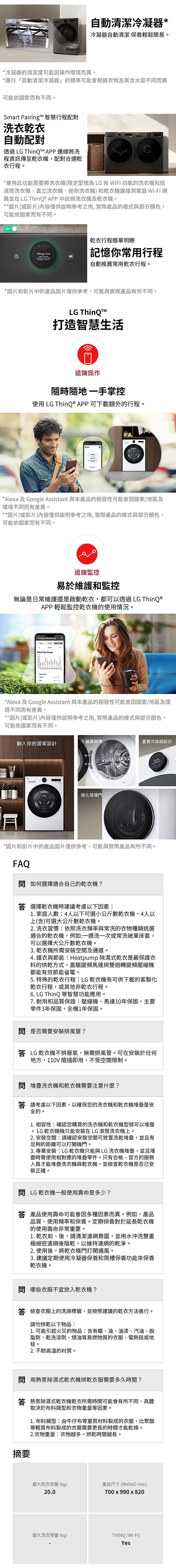 LG 樂金 20公斤 雙迴轉變頻免曬衣乾衣機|冰瓷白|AI Dryer™ WR-20DW (含基本安裝)