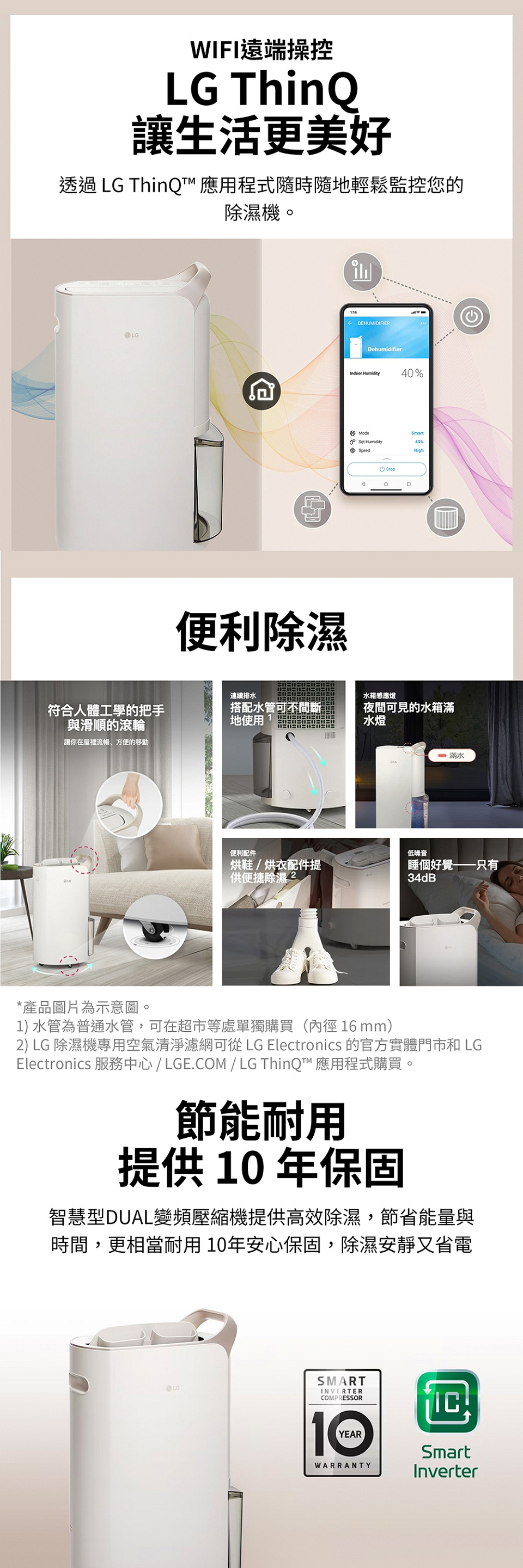 • -30項安全裝置 | WiFi遠控功能 | 19公升/日除濕量