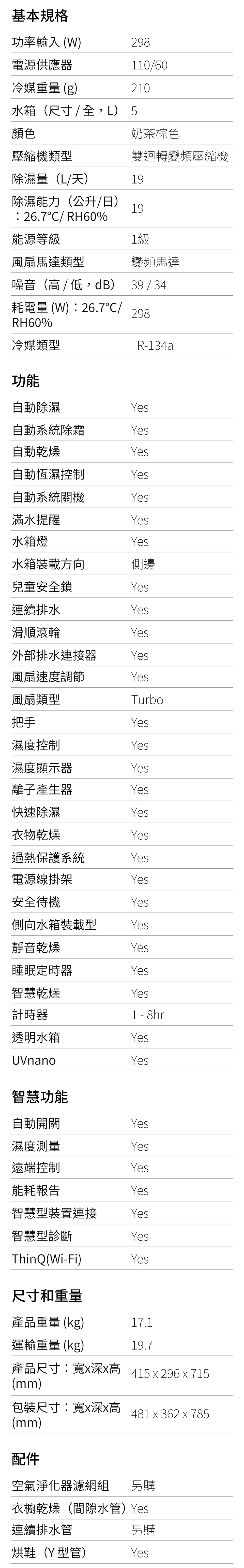 LG 樂金 19公升 Puricare™ 雙變頻除濕機(奶茶棕) MD191QCE0