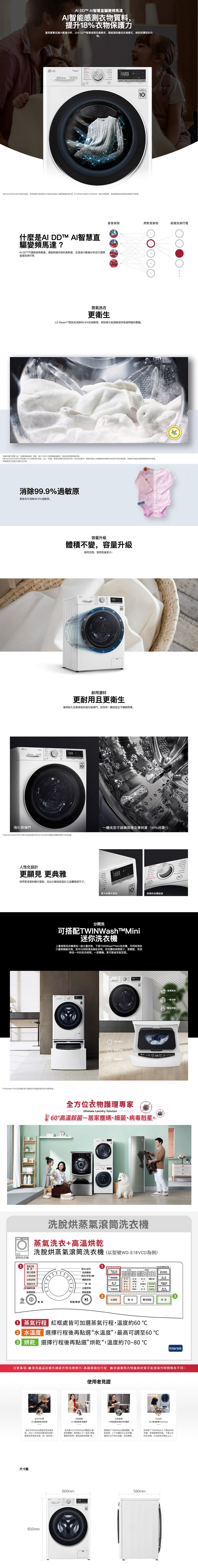 • -5種蒸氣洗衣行程:標準/強力/嬰兒衣物/高溫去汙/過敏防護
