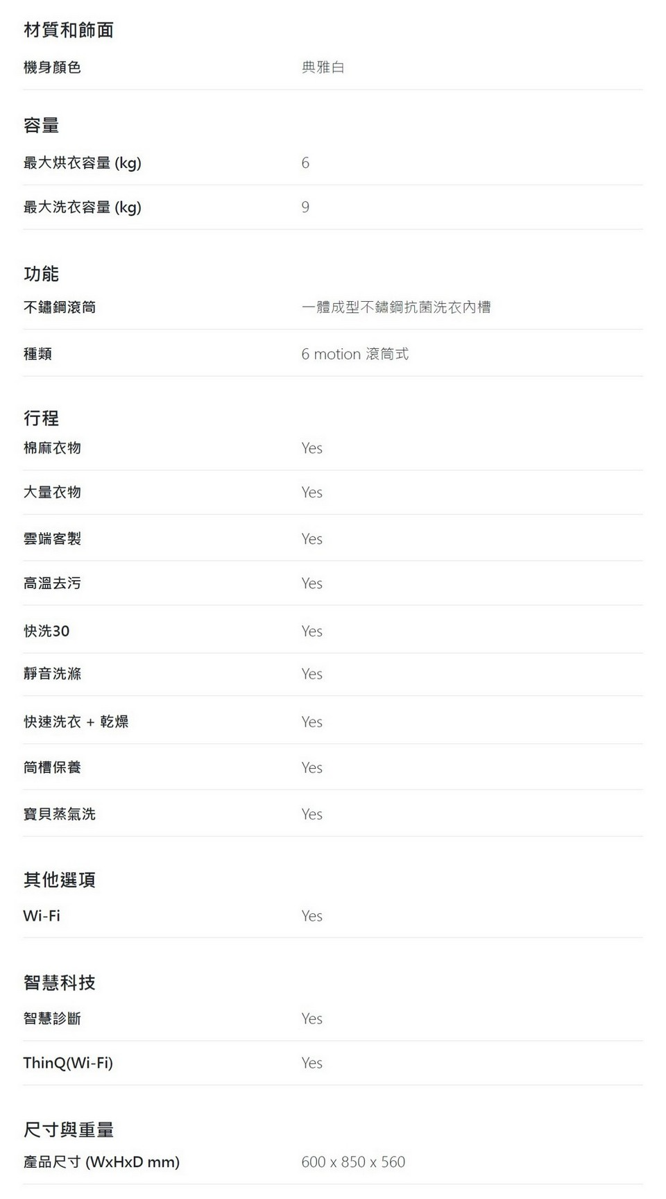LG 樂金 9公斤 滾筒洗衣機|冰瓷白|蒸洗脫烘 (洗9+烘6公斤) WD-S90VDW (含基本安裝)