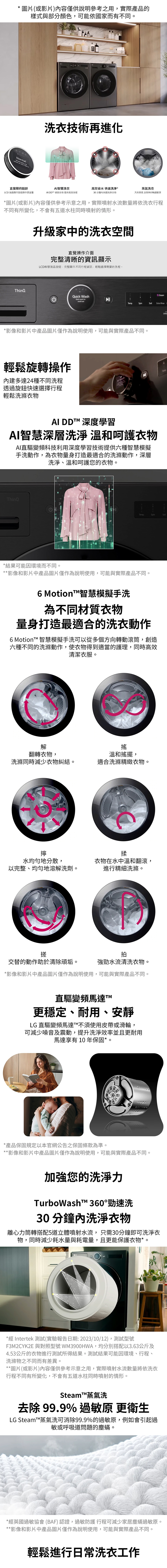 • -6 Motion 智慧模擬手洗:深層洗淨 溫和呵護衣物
