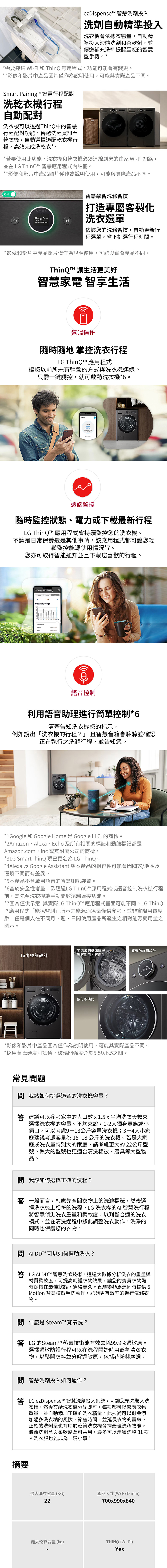 LG 樂金 22公斤 滾筒洗衣機|冰瓷白|AI DD™ 蒸洗脫 WD-S22FW (含基本安裝)